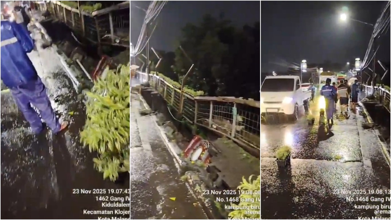 Kota Malang, PARLEMEN MALANG – Amblasnya trotoar di Jembatan Brantas, Jalan Gatot Subroto, pada Minggu (23/11/2025) malam membuat arus kendaraan di kawasan tersebut harus mendapatkan penanganan khusus. Dinas Perhubungan (Dishub) Kota Malang langsung menurunkan personel untuk mengatur lalu lintas di sekitar lokasi.